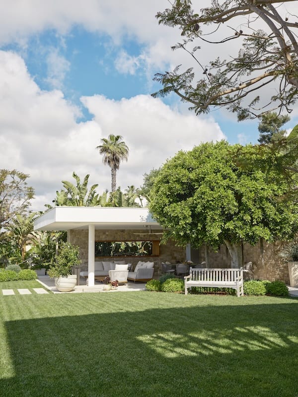 Ainsi, la décoration s’est exprimée à trois voix, dans une entente complice entre les clients, Eduardo et Alexandre Curtet, Bel Œil. Ensemble, nous avons parcouru les marques, affiné les choix et défini une ligne claire. À cela se sont ajoutées quelques pièces d’auteur, choisies avec soin : fauteuils Eames, chaises de Le Corbusier, objets de caractère. Nous cherchions une forme d’évidence. Une sélection juste, équilibrée, intemporelle. L’extérieur prolonge cette unité, renouant avec son contexte. Le pool house aux accents minéraux s’inscrit dans un paysage soigneusement dessiné. Ce cadre paysager établit un dialogue subtil entre la rigueur modulée de l’intérieur et l’empreinte libre de l’esprit provençal.