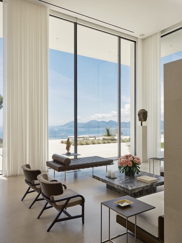 Nichée sur les hauteurs de Cannes, ce belvédère contemporain, bâti sur les vestiges d’une ancienne maison troglodyte, embrasse la Méditerranée avec retenue. L’architecture, signée Richard Lavelle, trouve à l’intérieur son écho sensible sous la direction de l’architecte d’intérieur Eduardo Di Muzio. Avec une maîtrise silencieuse du détail et une approche globalisante, il a orchestré l’aménagement comme un dialogue entre le paysage, la lumière et l’intimité des propriétaires.