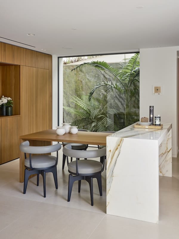 Puisque ce qui fait l’âme du projet demeure cette complicité créative entre l’architecte d’intérieur et les propriétaires. Cette villa a été conçue à partir d’un processus d’écoute et de cocréation avec la famille qui l’habite. Chaque décision, chaque choix de matière, chaque proportion résulte d’un échange continu, attentif à son mode de vie, ses valeurs et ses aspirations, souligne Eduardo. Je cherche à donner une place à ses objets, à son histoire.