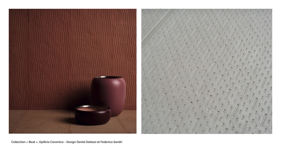 Conçue par le duo Daniel Debiasi et Federico Sandri, Beat traduit le passage du temps à travers la matière. Inspirée des rythmes de la nature et des traces humaines – sillons d’un champ, ondulation de l’eau, empreintes dans la neige – la collection révèle la sensibilité du grès NeoClay™, un matériau vivant qui réagit au façonnage avant d’être figé par la cuisson. Deux textures, Seed et Rain, sont proposées dans un unique format de 20 × 50 cm et quatre teintes : Snow, Stone, Clay et Ash. Chaque surface garde la mémoire du geste, entre précision artisanale et empreinte du temps. Opificio Ceramico