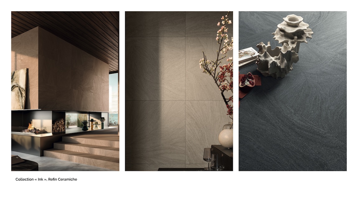 Ink explore la céramique comme surface d’expression. Entre geste artistique et rigueur conceptuelle, la collection s’inspire du tracé manuel pour en traduire la fluidité et les nuances. Le format 80 × 80 cm met en valeur le mouvement du signe, dont les motifs varient selon la lumière et la distance. Huit teintes composent la palette : Pure, Grace, Bold, Earthy, Blush, Cozy, Wavy et Quiet. Chaque couleur, pensée comme un état d’âme, révèle une profondeur sensible soulignée par une finition mate au lustre délicat. Un dialogue subtil entre émotion et maîtrise technique. Refin Ceramiche