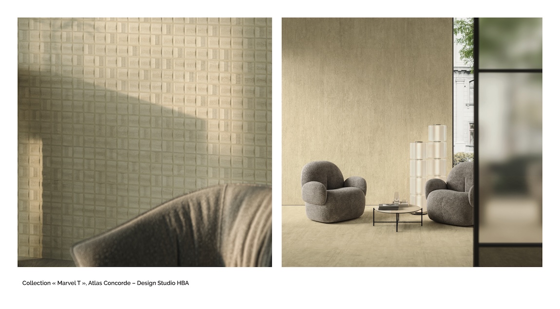Fruit d’une nouvelle collaboration entre Atlas Concorde et le Studio HBA, Marvel T réinvente le travertin dans une écriture sculpturale et contemporaine. La collection rend hommage à l’art italien de la taille de pierre à travers des surfaces tridimensionnelles – 3D Qube, 3D MiniQube et 3D Arch – conçues pour dialoguer avec la lumière. Quatre essences inspirées de travertins naturels, déclinées en sept nuances, du Travertino Navona au Stone Veil, traduisent une même recherche de justesse et de raffinement. Pensée pour les projets résidentiels et hôteliers, Marvel T unit savoir-faire artisanal et innovation céramique. Atlas Concorde