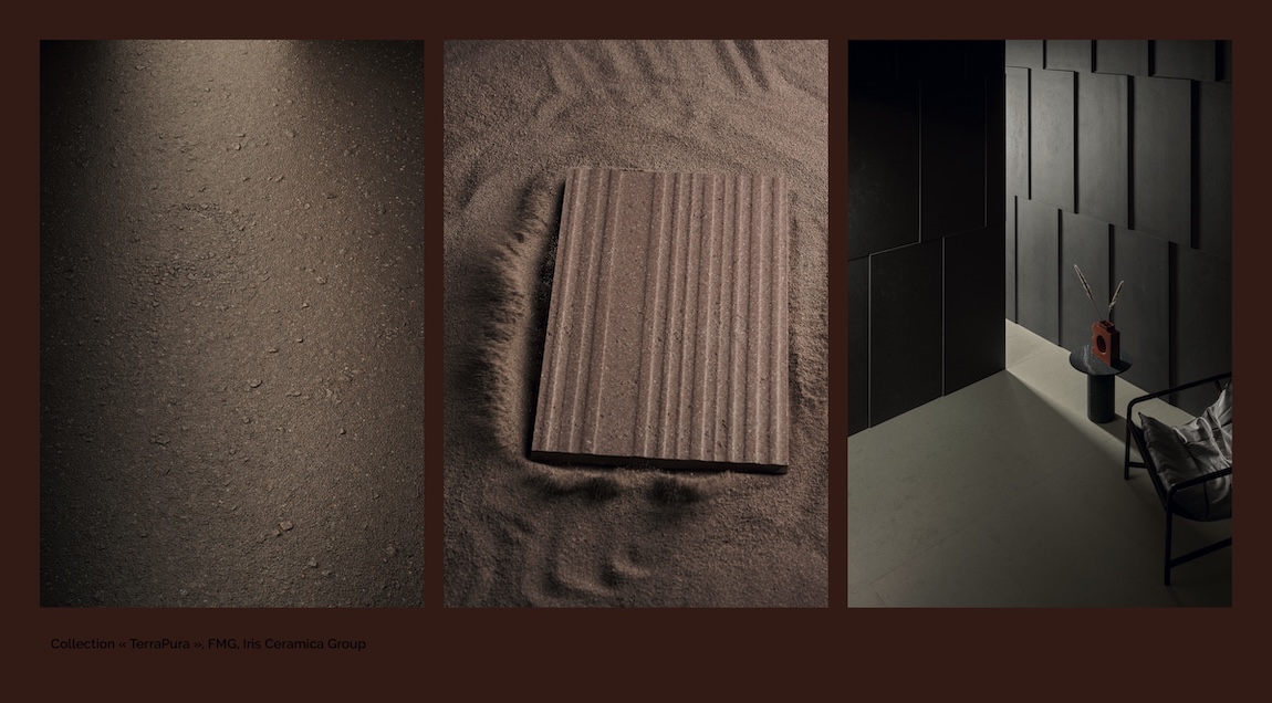 TerraPura célèbre la pureté de la matière à travers un grès cérame pleine masse conçu avec la technologie Full Body3. Chaque dalle, homogène dans toute son épaisseur, révèle la densité du matériau et ses nuances naturelles – fines veines, légères irrégularités, empreintes du temps. Déclinée en dix tonalités, du Pura Bianco au Pura Antracite, la collection associe esthétique et performance. Trois finitions – Top Lapped, Natural Plus et Antislip – répondent aux différents usages, du résidentiel à l’extérieur. Formats, mosaïques et éléments structurés se combinent librement pour créer des compositions équilibrées où la terre devient architecture. FMG – Iris Ceramica Group